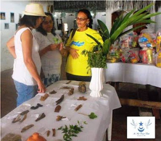 | Mãe Dada de Orixalá, Ìyálórìsà do Terreiro, transmitindo saberes das folhas aos técnicos de saúde do município. |